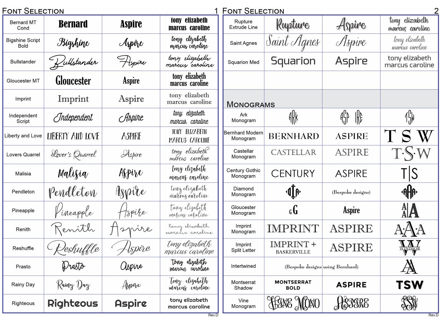 Can be customized with a message, name, monogram or logo. Scroll for font options.