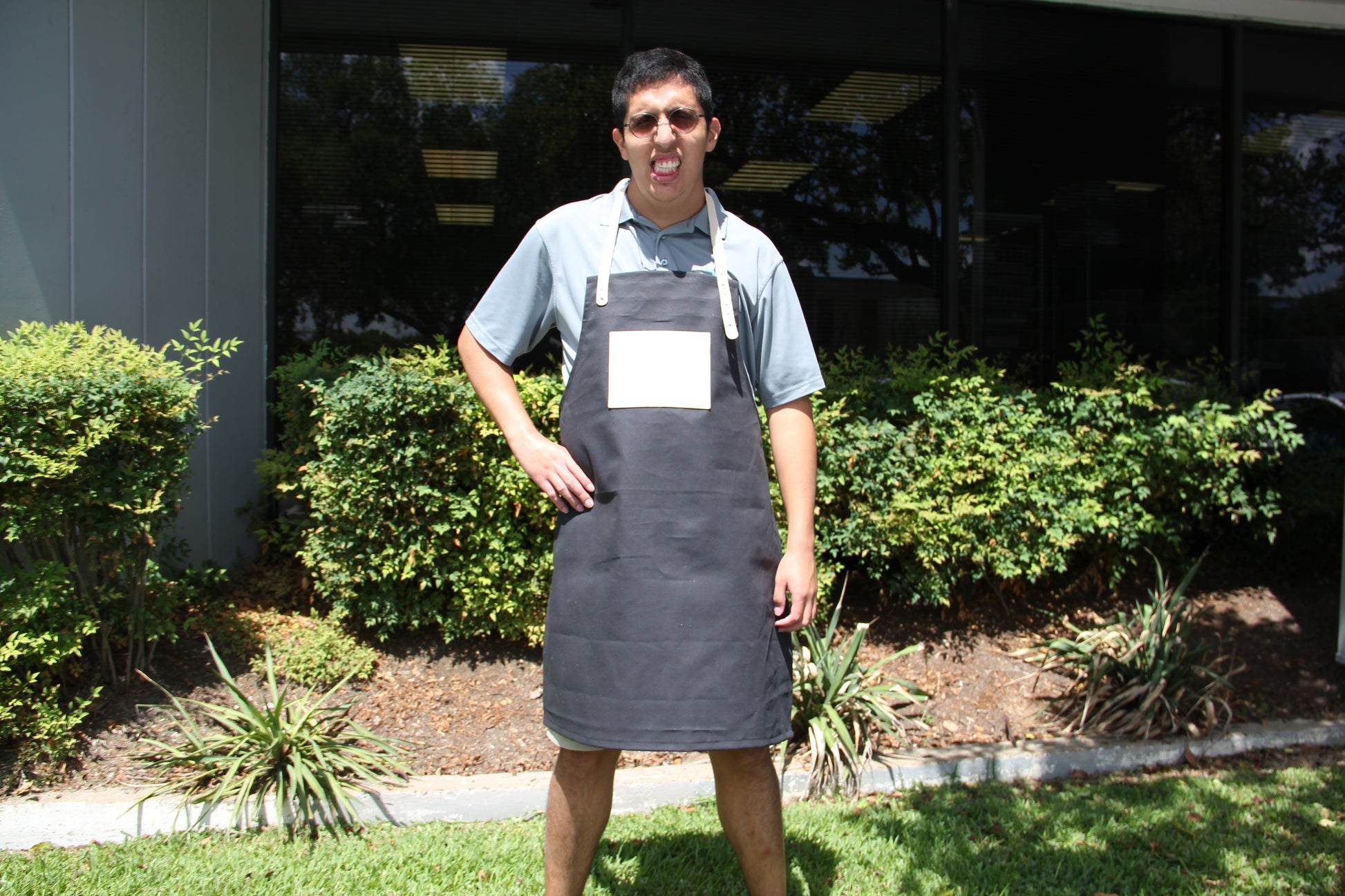 Product Details: Heavy duty canvas apron with adjustable leather strap and leather front pocket that can be personalized with a monogram.