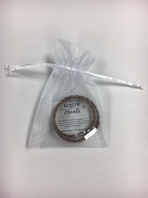 This kit includes tools, components and instructions to create three different Aspire bracelet styles. A selection from the following color options will be provided: Olive Green, Tobacco, Brown, Pastel Turquoise, Purple, Putty, Rust Single wrap style bracelet is the same as the double wrap but only wraps around the wrist once. |