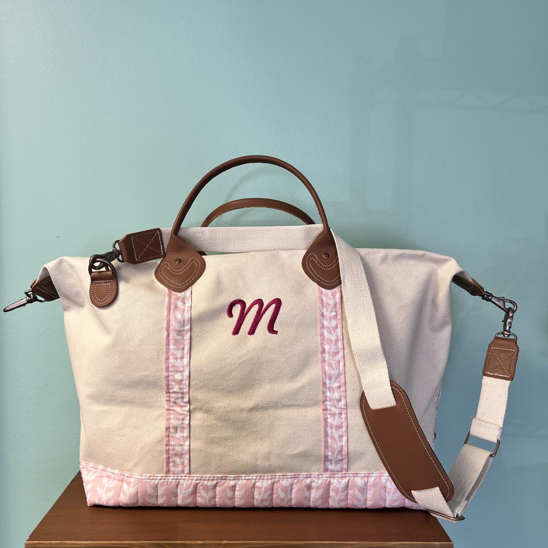 Pack up in style with the Block Print Weekender! You'll love the elegant block print design and spacious interior, easily carrying all your essentials while rocking a quirky, fun look. Plus, the detachable shoulder strap and genuine leather handles make this a versatile and convenient choice for any adventure.