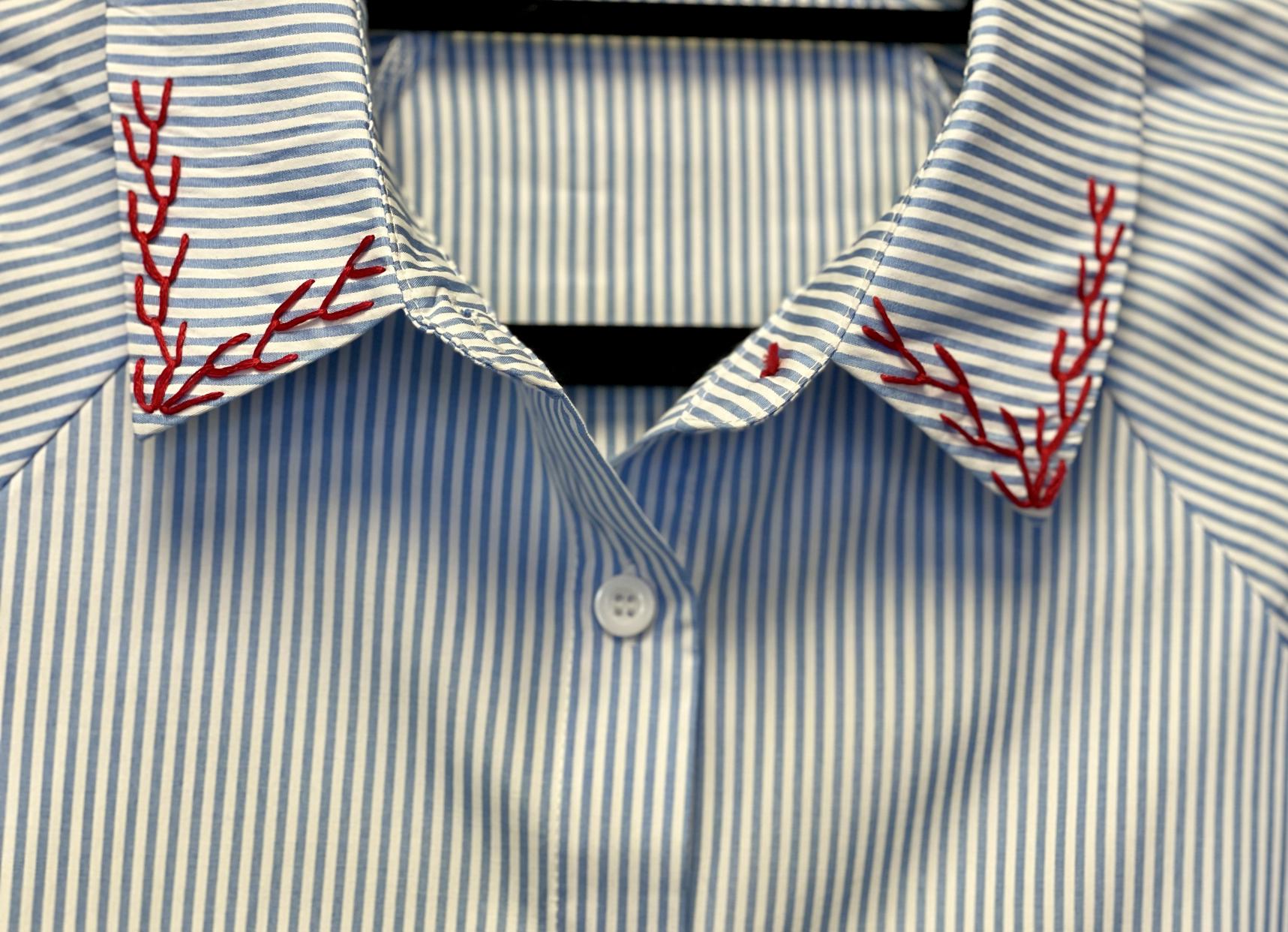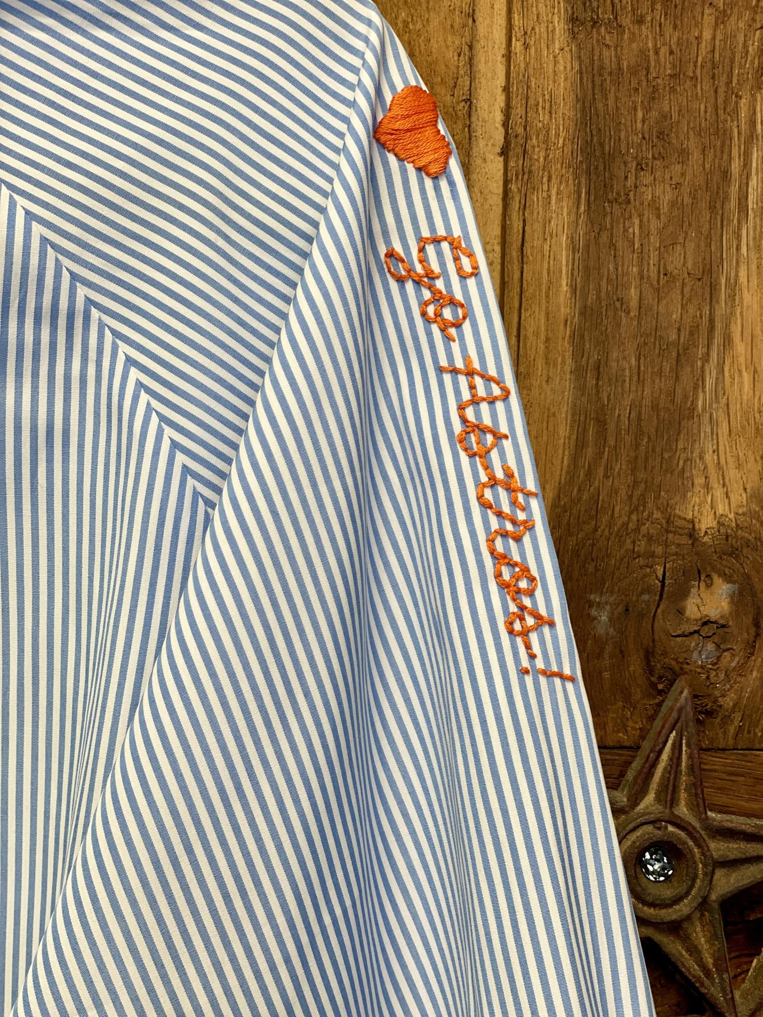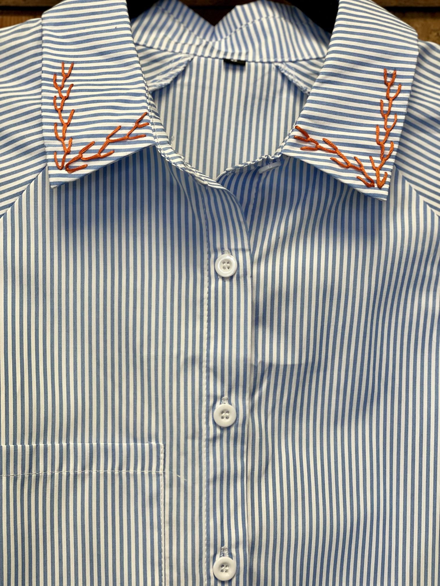 Hand Embroidered Striped Button Down Shirt