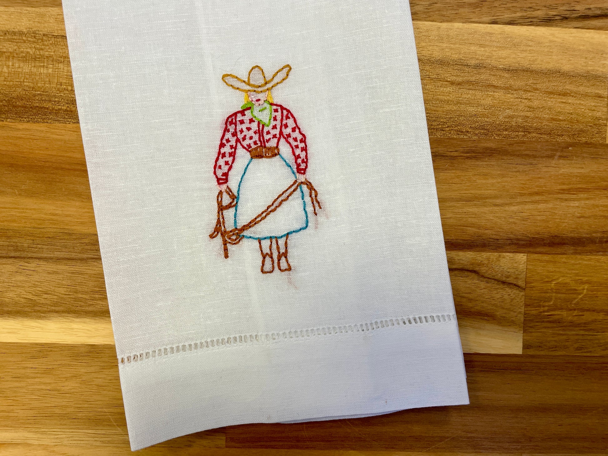 Cowgirl Embroidered Tea Towel
