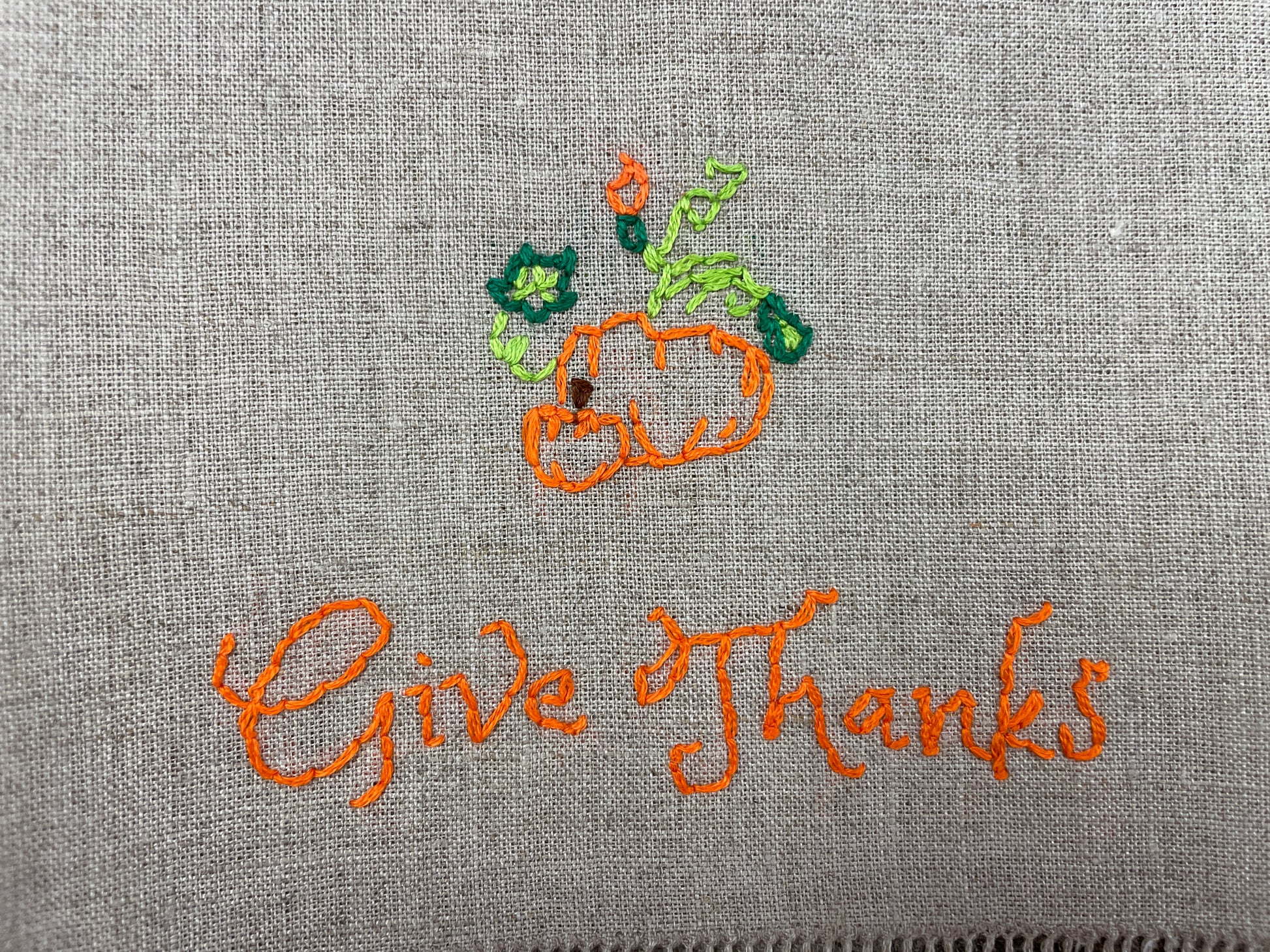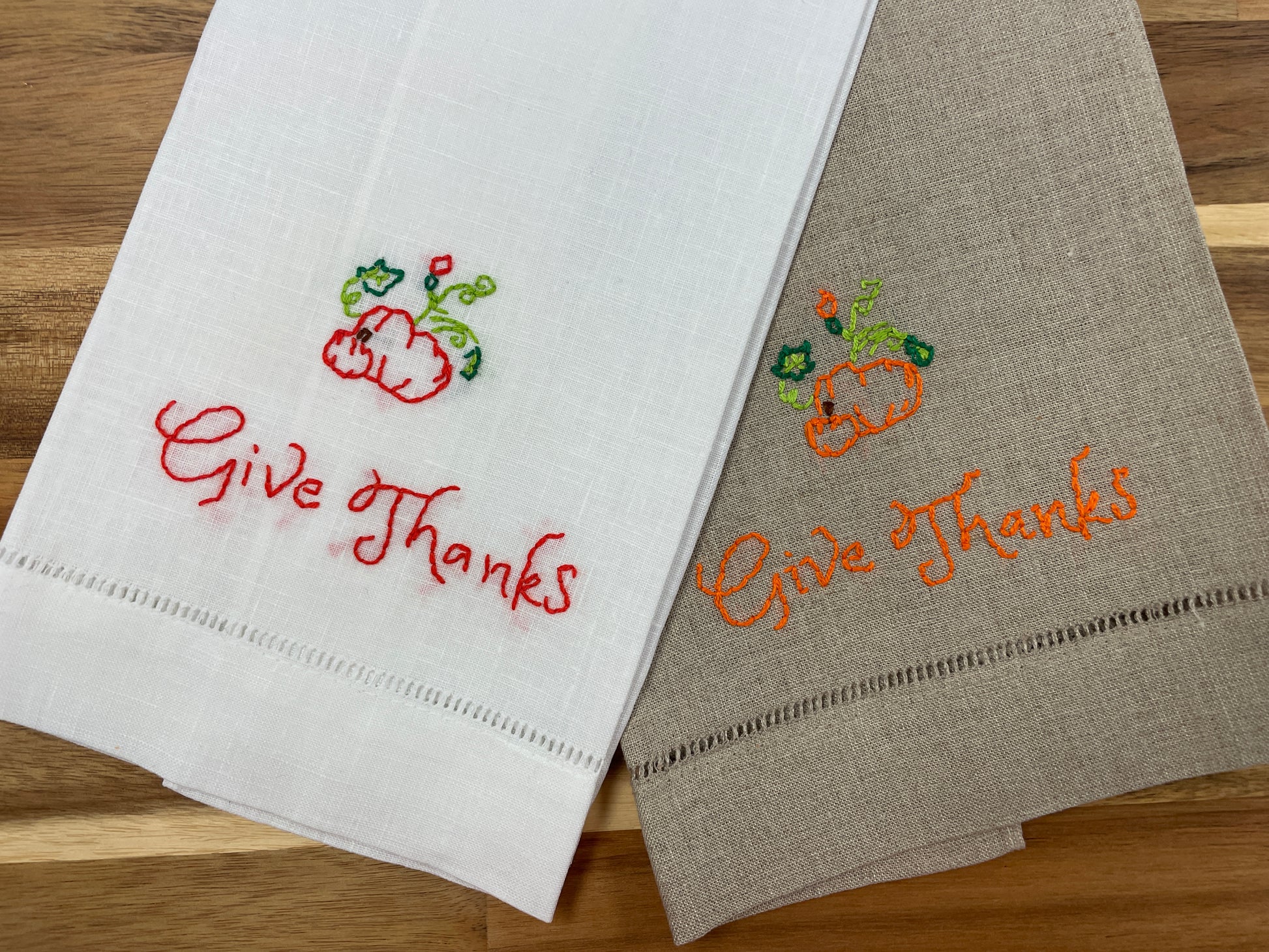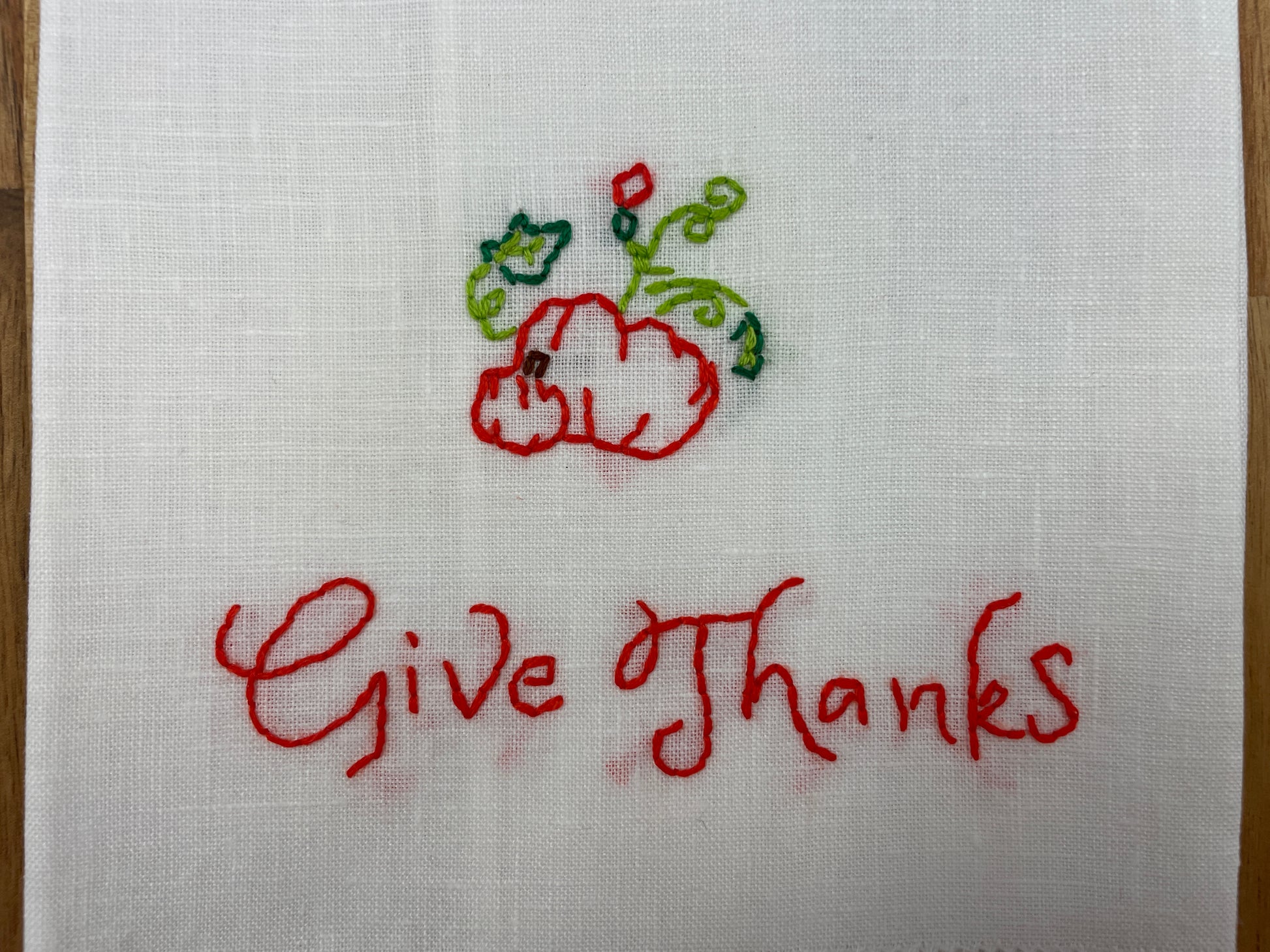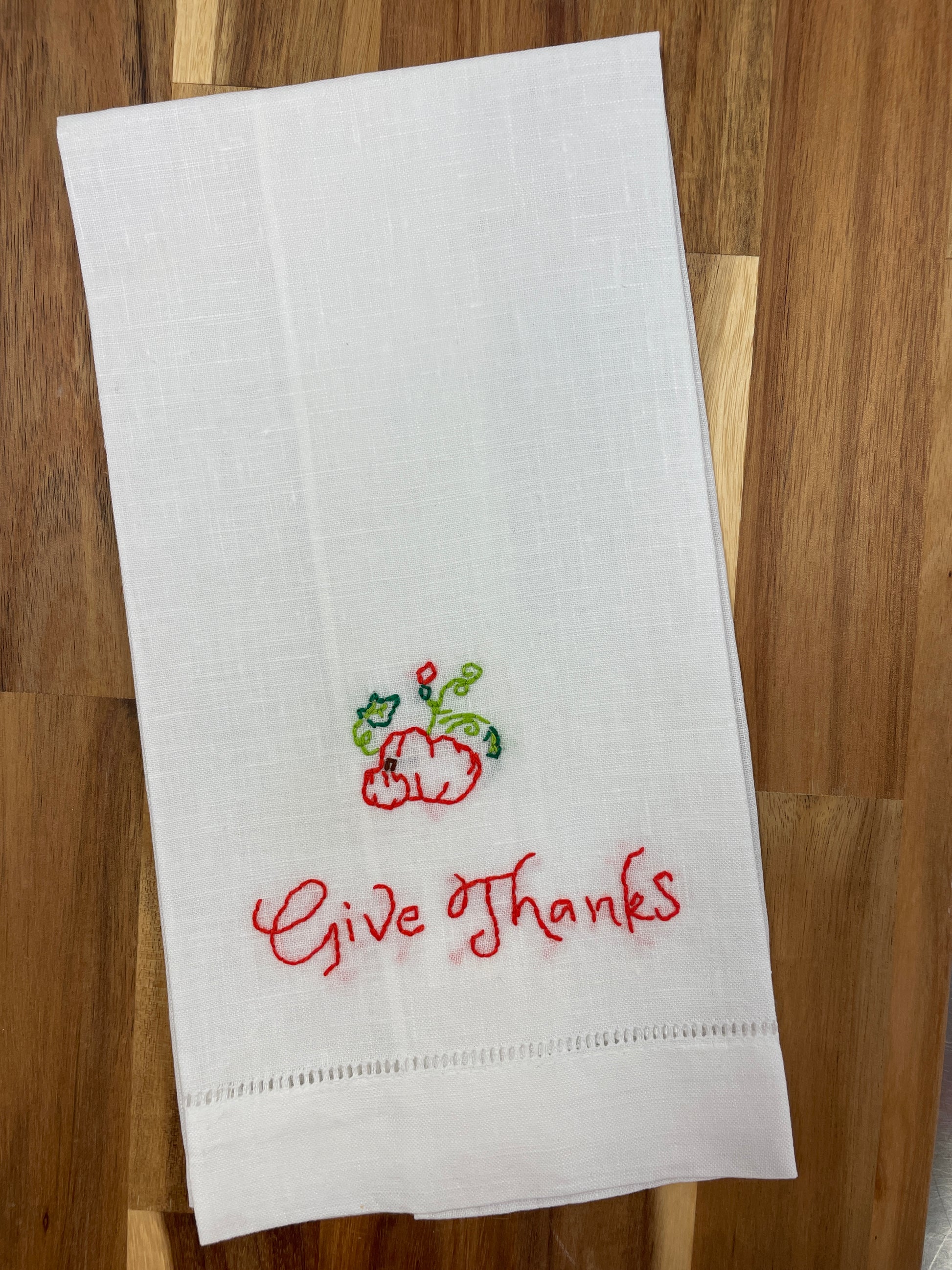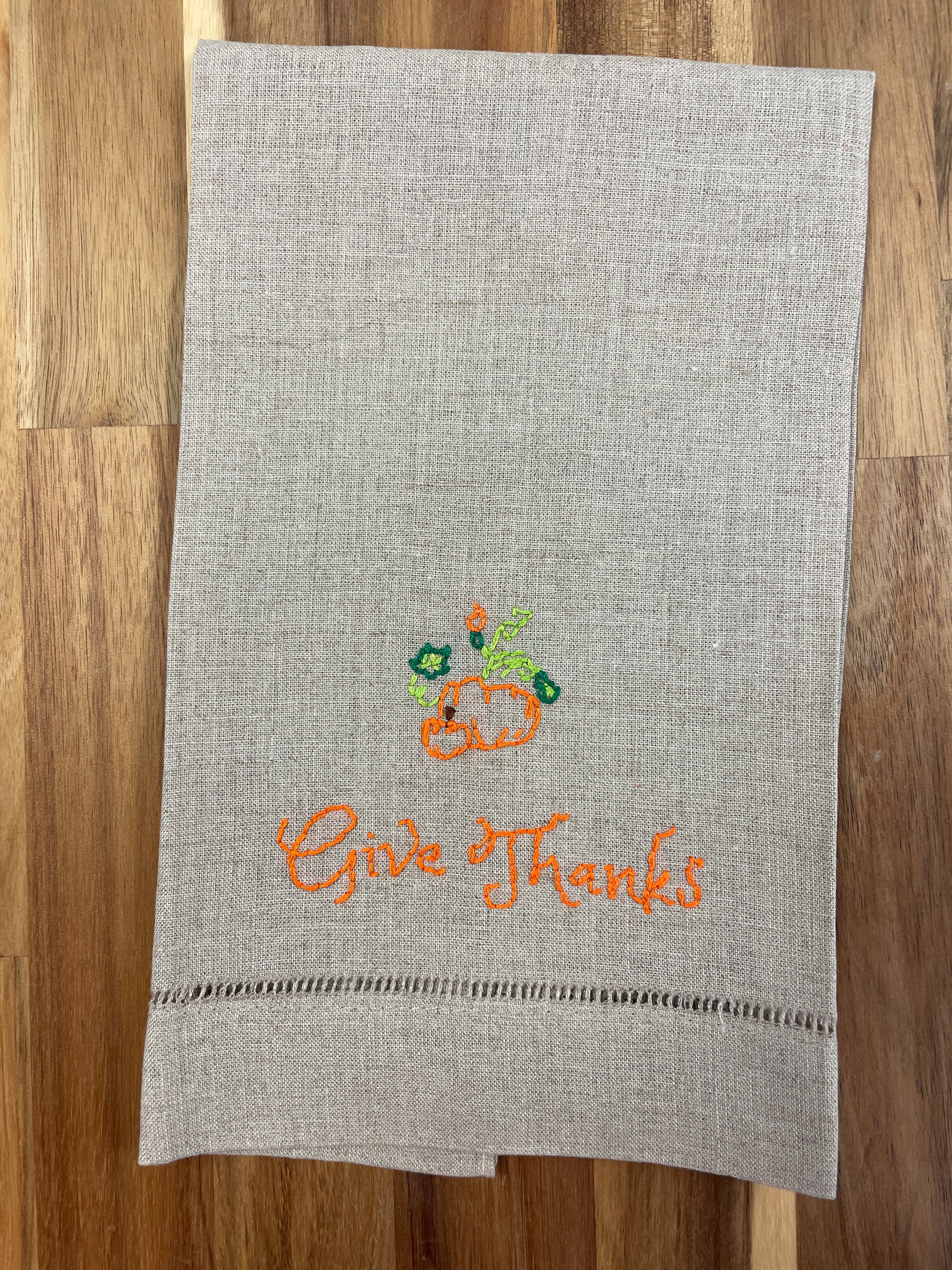 Give Thanks Embroidered Tea Towel