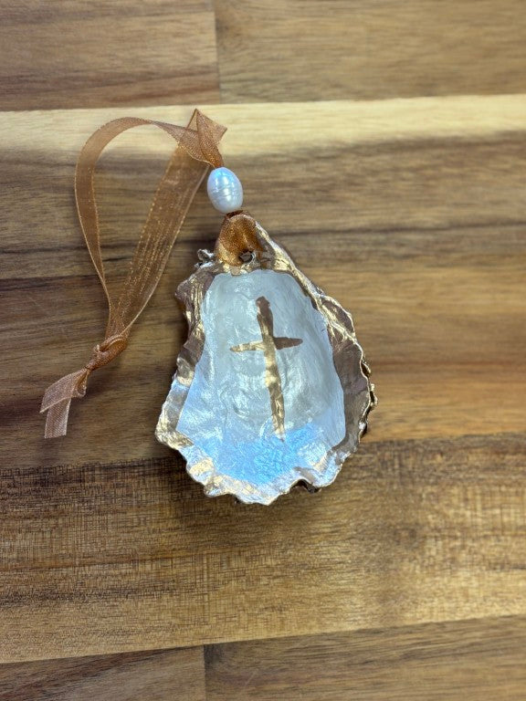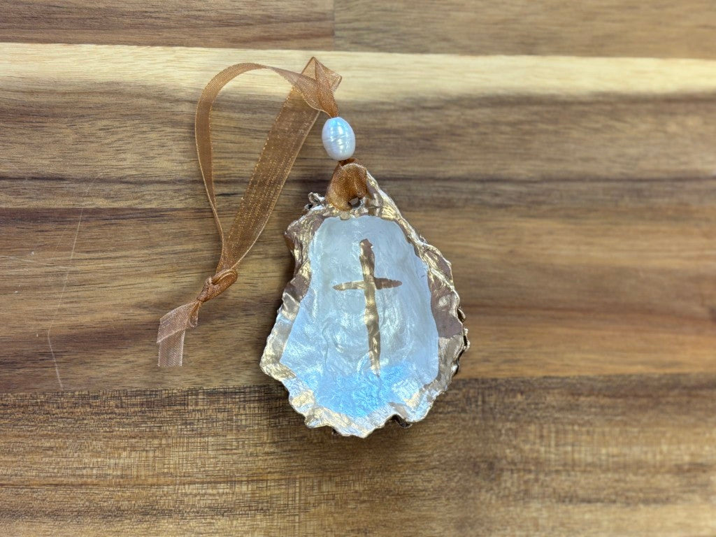 Hand Painted Cross Shell Ornament