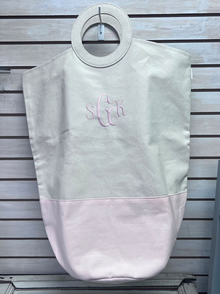 Product Details: From your college dorm room to the laundry mat and back again, this laundry tote bag is made to be easy to grab, carry, and fold up to put away when the laundry is all done. Durably constructed of 18 oz canvas with a solid dyed bottom. Measures 25" H x 21" W x 14" D. Embroidered in style and color of your choice.
