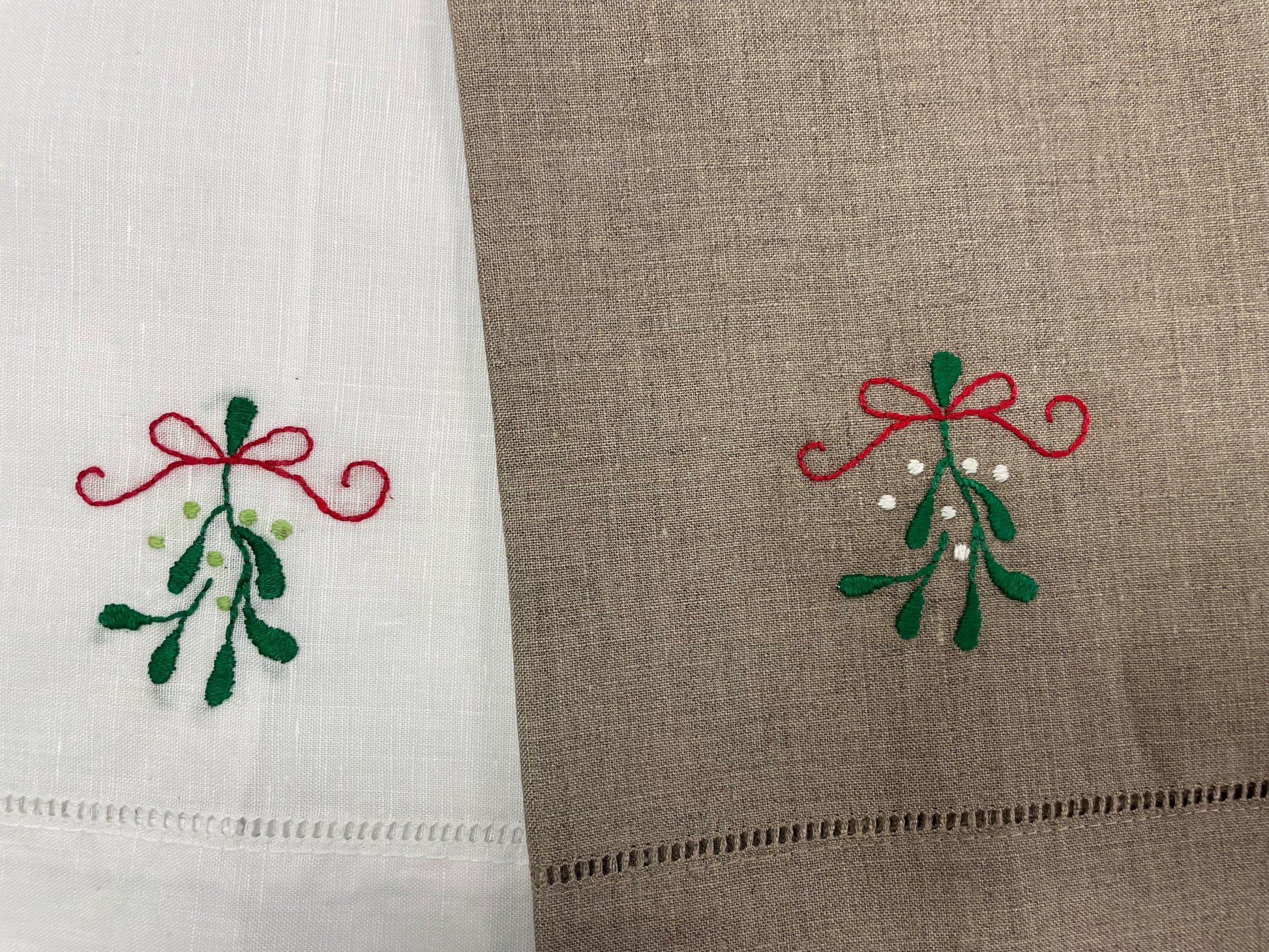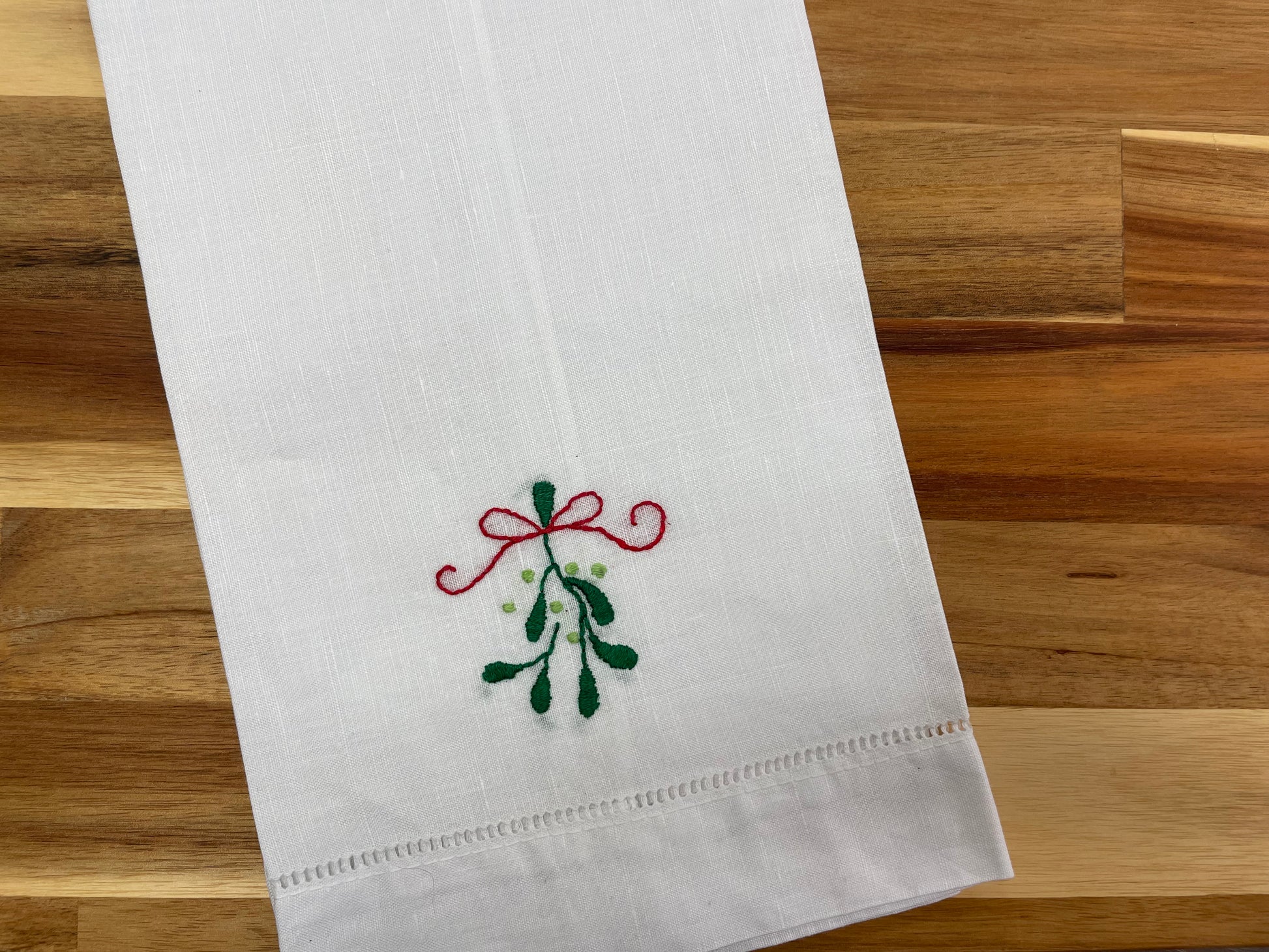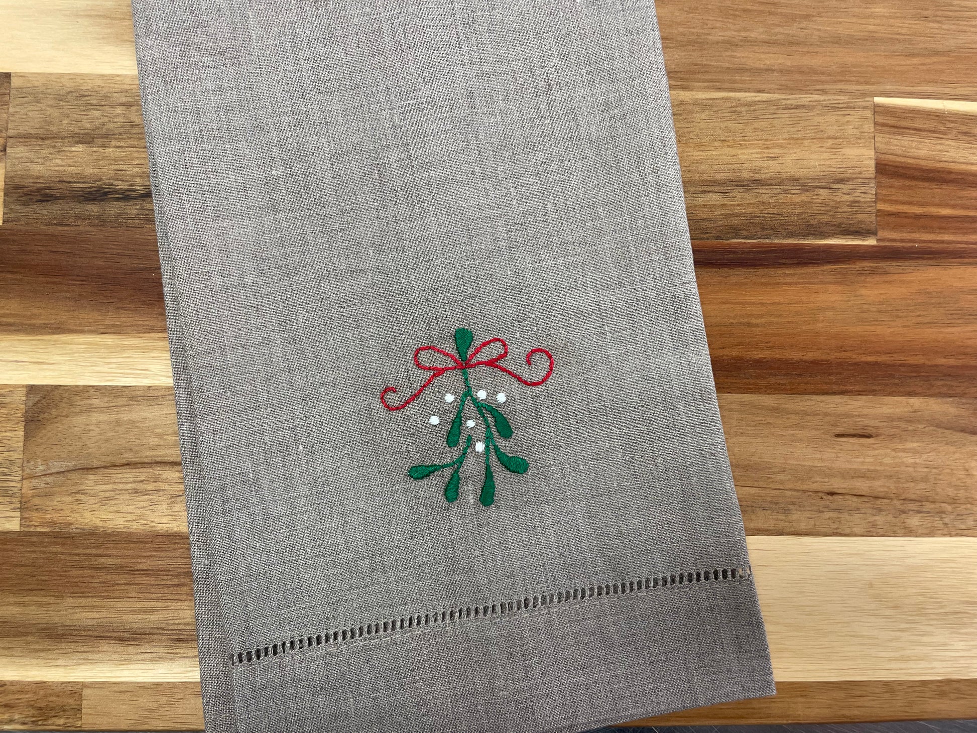 Brighten up your kitchen with our Mistletoe Embroidered Tea Towel! Made from luxuriously soft and heavyweight linen. This towel is hand-embroidered by the Artisans at Aspire is available in white and tan. Perfect for decorative purposes, embroidery, and monograms, this 14" x 22" tea towel is the perfect gift for the holiday season!
