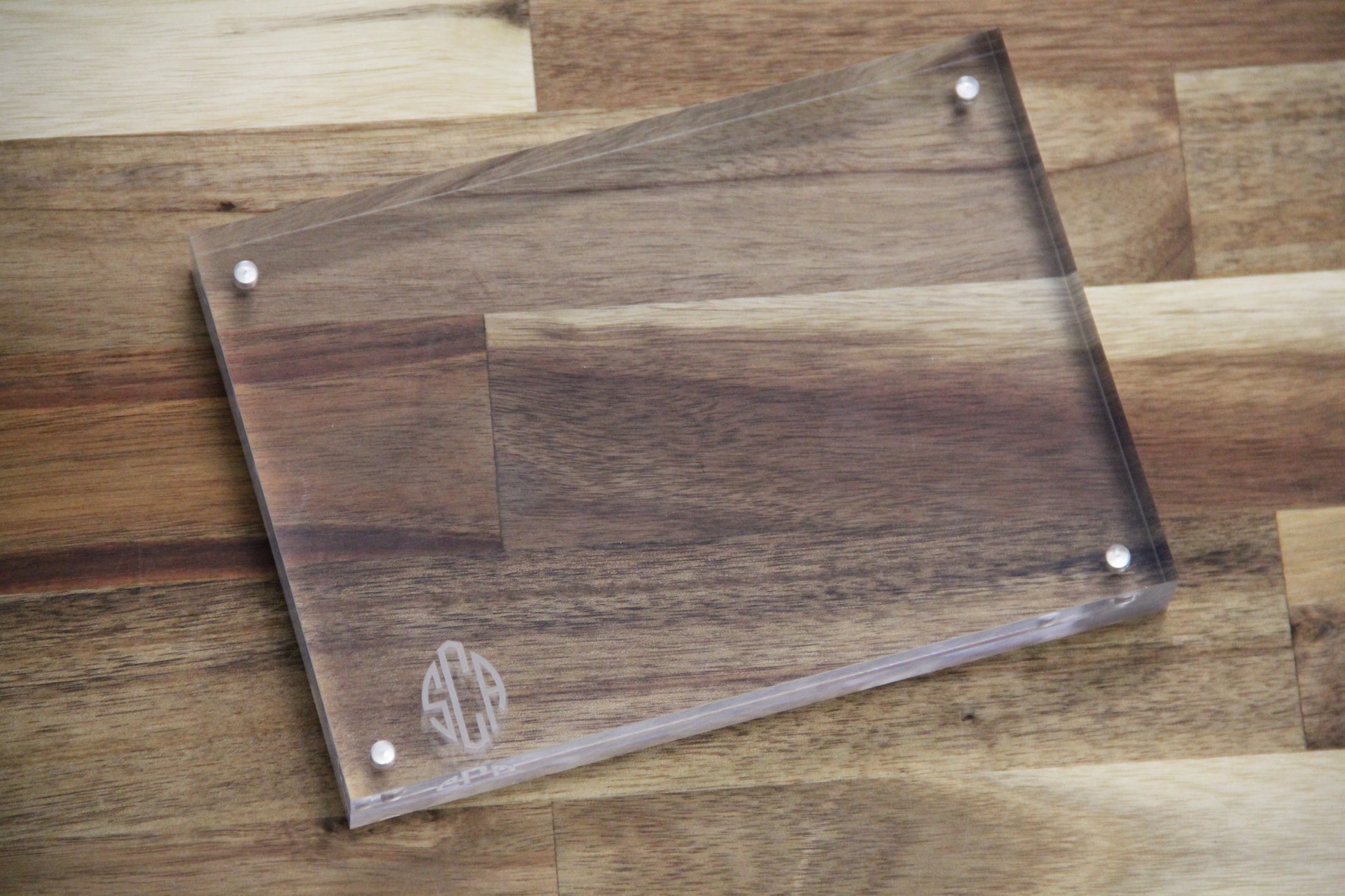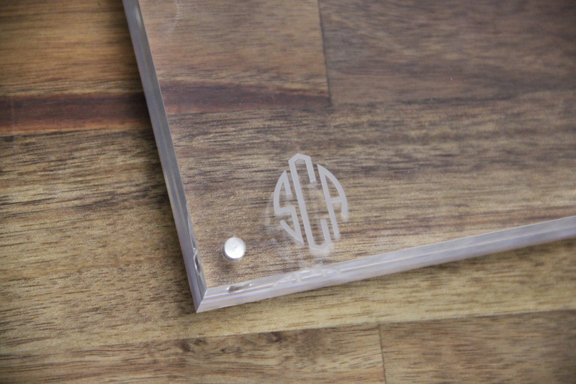 Can be personalized with a monogram or name and either in the center or corner of the frame. See pictures for examples.