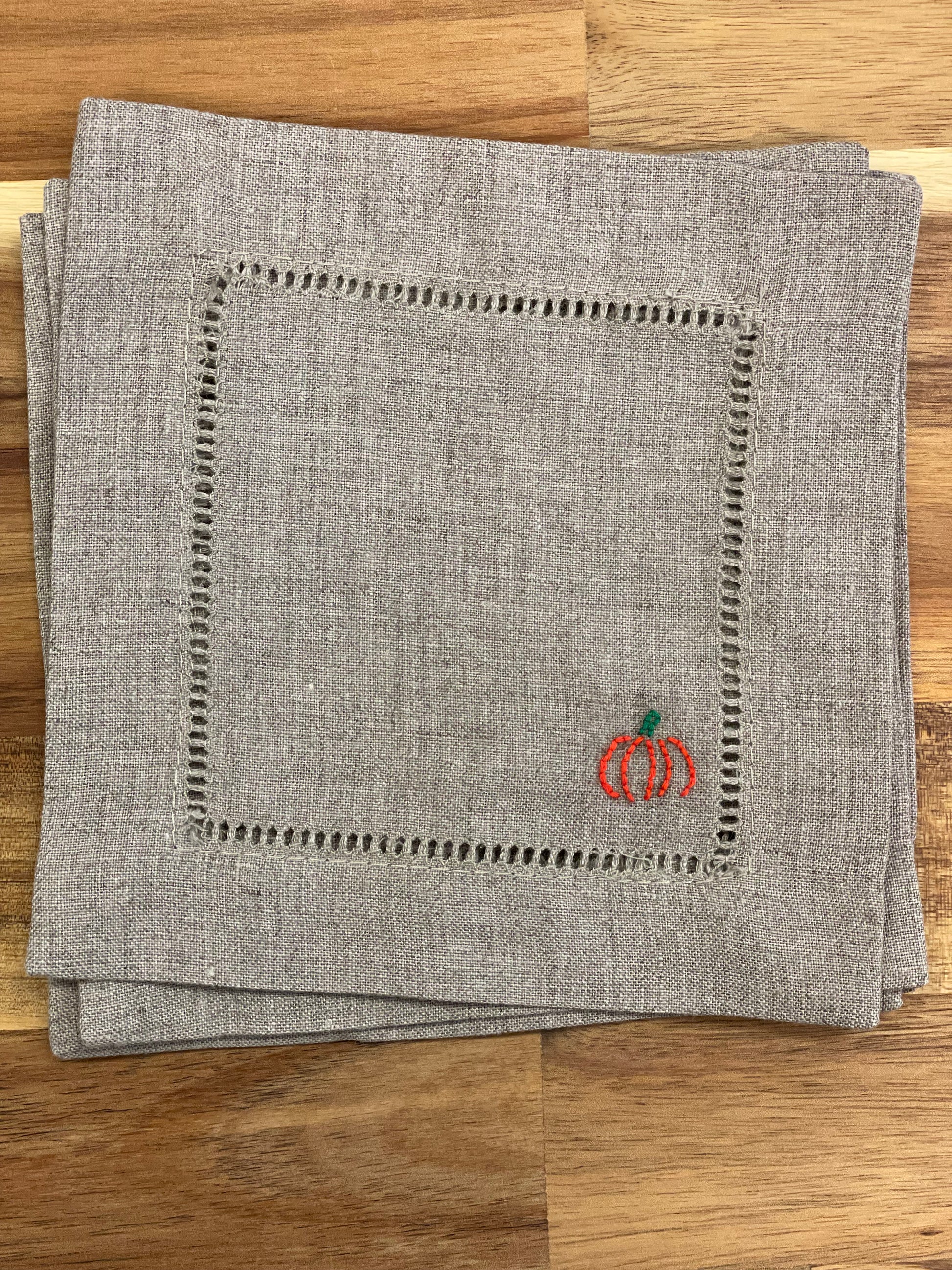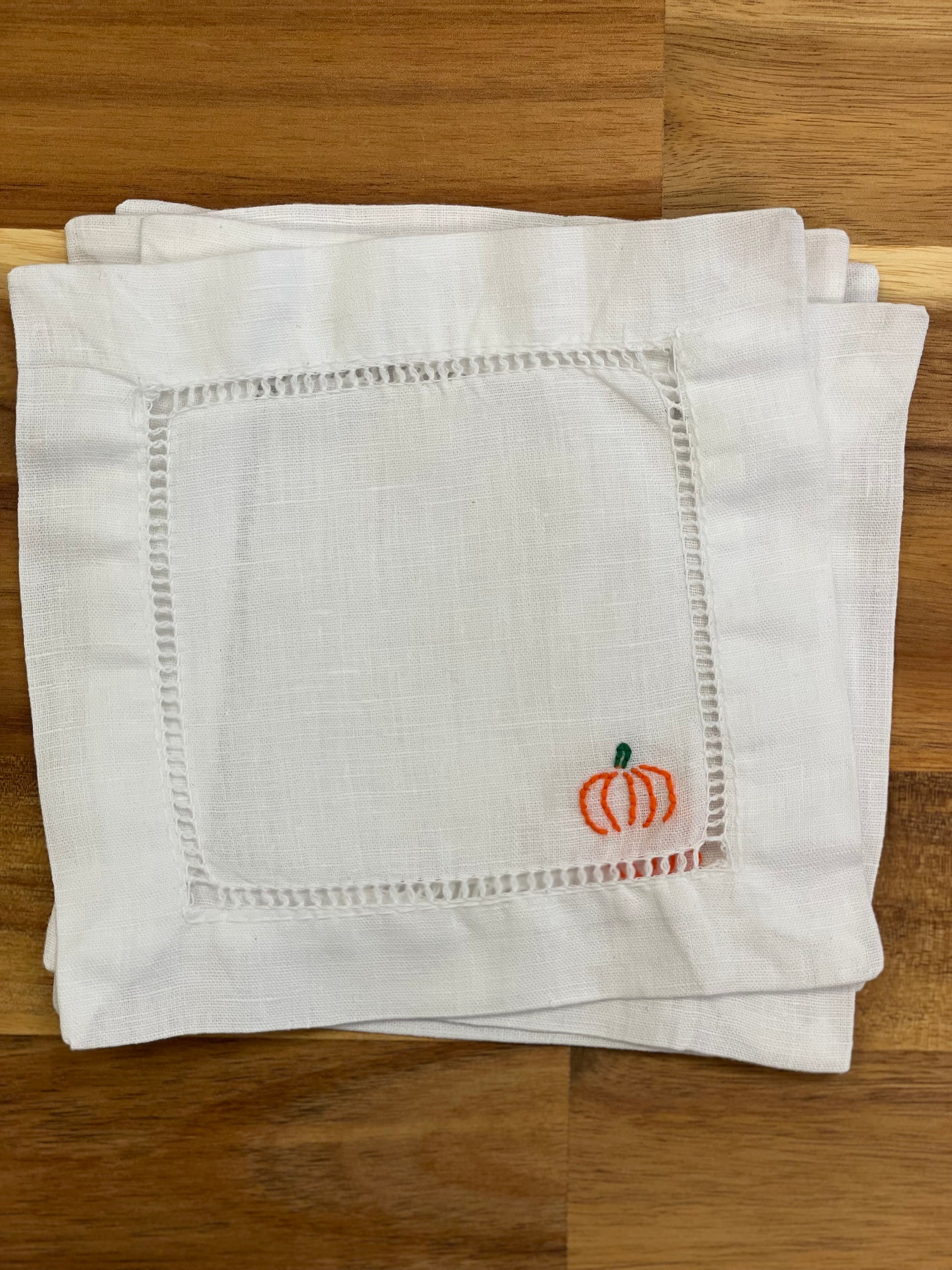 Pumpkin Embroidered Cocktail Napkins