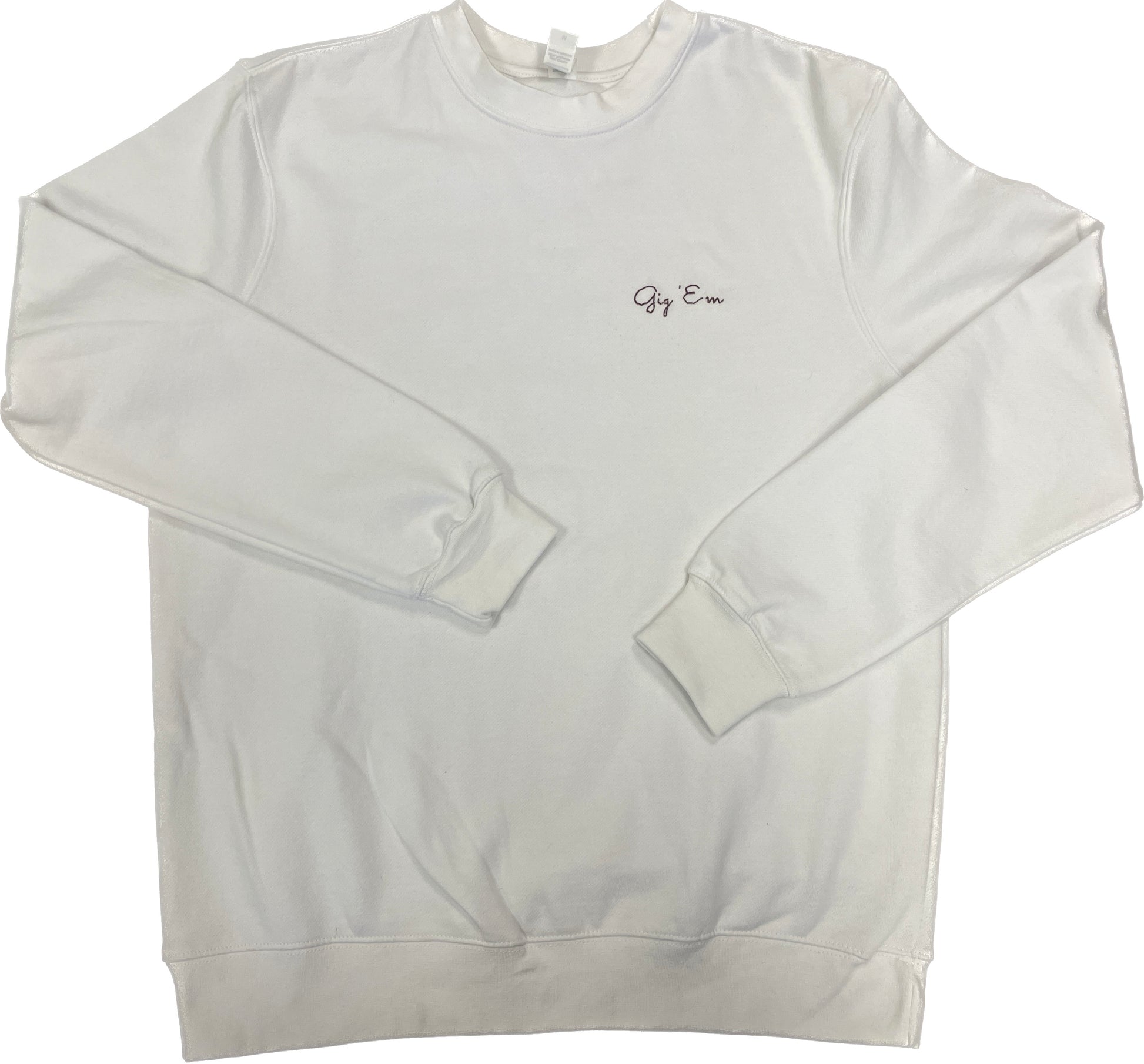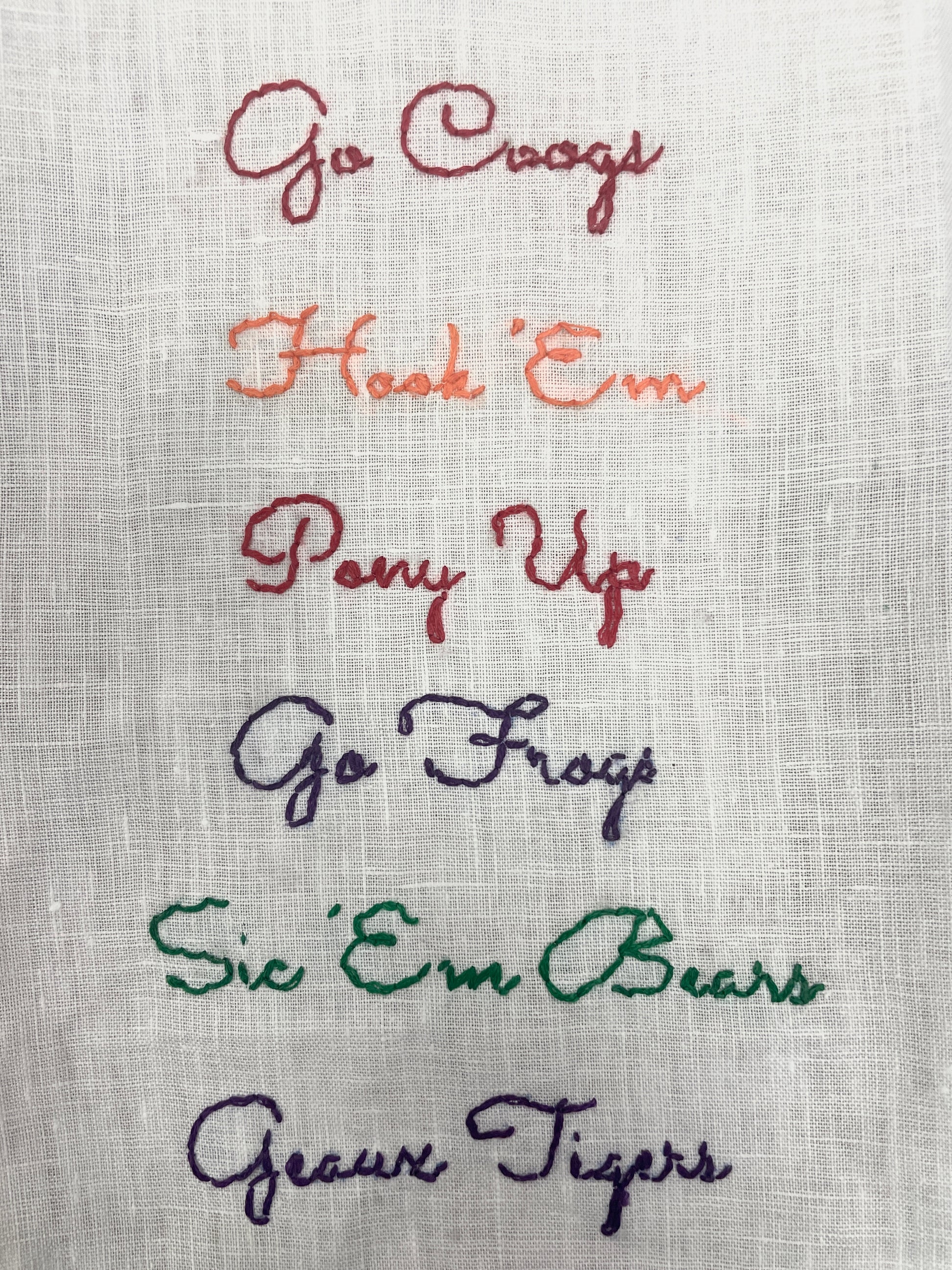 Hand embroidered sweatshirt with your favorite college saying! Sweatshirts are available in white and embroidered in the coordinating school color.