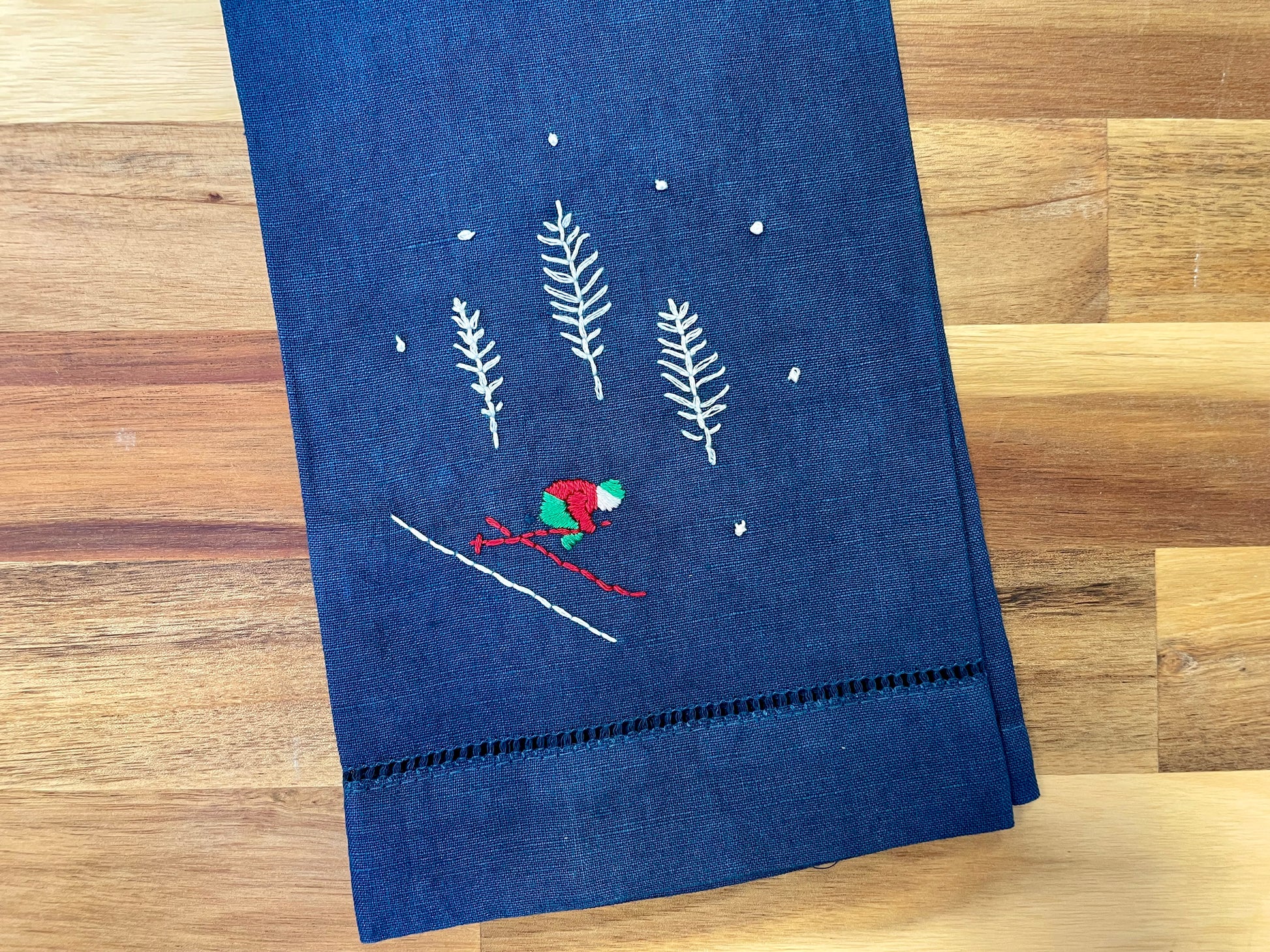 Product Details: Linen tea towel, hand embroidered by the artisans at Aspire.