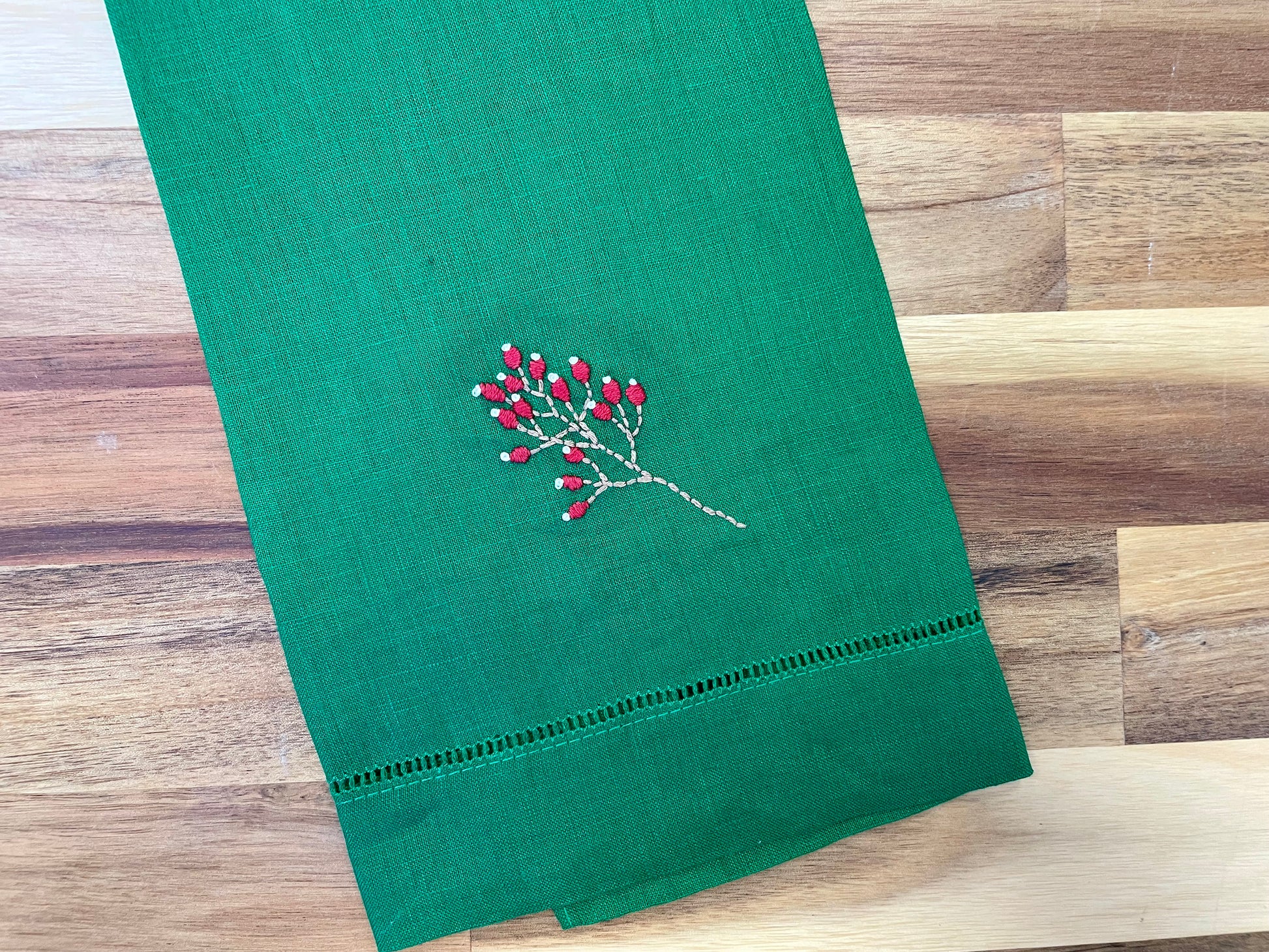 Winter Berries Embroidered Tea Towel